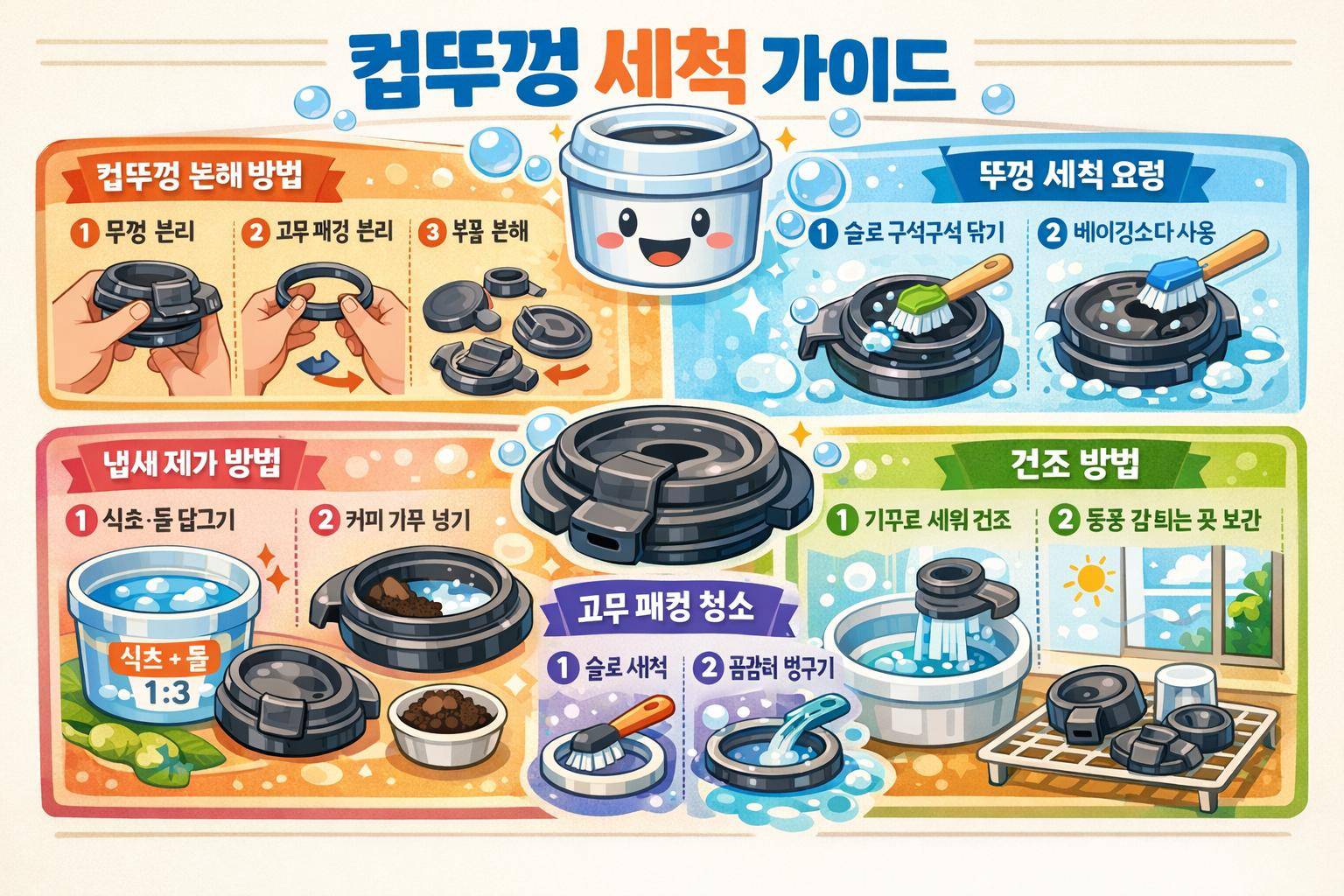 컵뚜껑 세척은 분해부터 시작